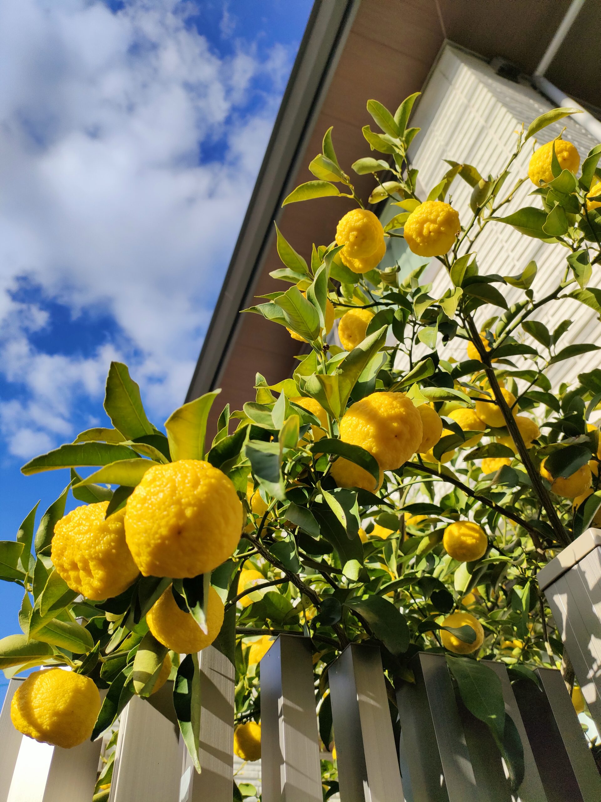 教室員の風景 2025年12月 2026.01.06 今年は庭の柚子が鈴なりに生り、爽やかで力強い香りを放っています。植えたばかりの時はひょろひょろで実をつけない年もありましたが、毎年少しずつ枝葉を広げてここまで成長しました。植物のたくましさと静かに流れる年月の重みを感じます。さて、これだけあったらしばらく柚子の実を使い放題!お風呂にいれるのもいいし、煮物や味噌汁に加えてもいいですよね。柚子さん、豊かな恵みをありがとうございます。